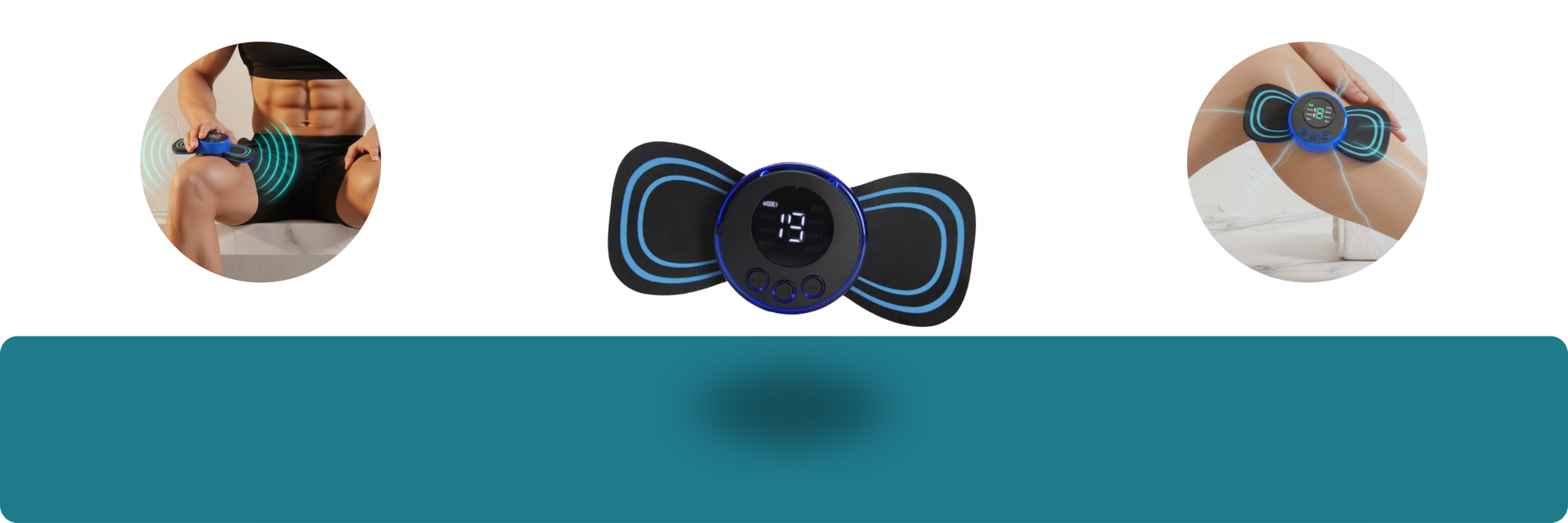 3-in-1 Athletic Massager is a portable, hands-free muscle stimulator. It uses EMS (electrical muscle stimulation) to create gentle, controlled contractions, and TENS (nerve stimulation) to modulate discomfort by helping the release of endorphins (body’s natural painkillers) through electrical pulses that reach the nerve.